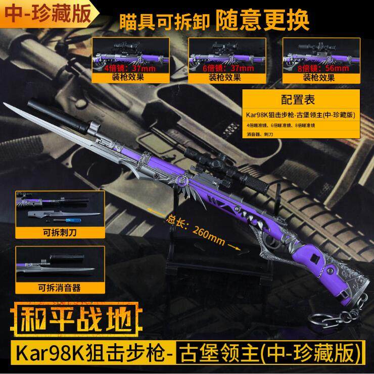 Peaceful Elite Eat Chicken 98K Ancient Castle Collar Main Skin Full Of Metal Small Gun M249 Weapons Model Toy Model