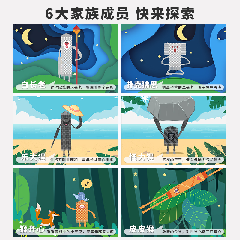 Elder Bai, poker baboon, happy gorilla, strange power monkey, Pipi monkey, happy monkey, orangutan family chooses 2 from 6, orangutan family chooses 3 from 6