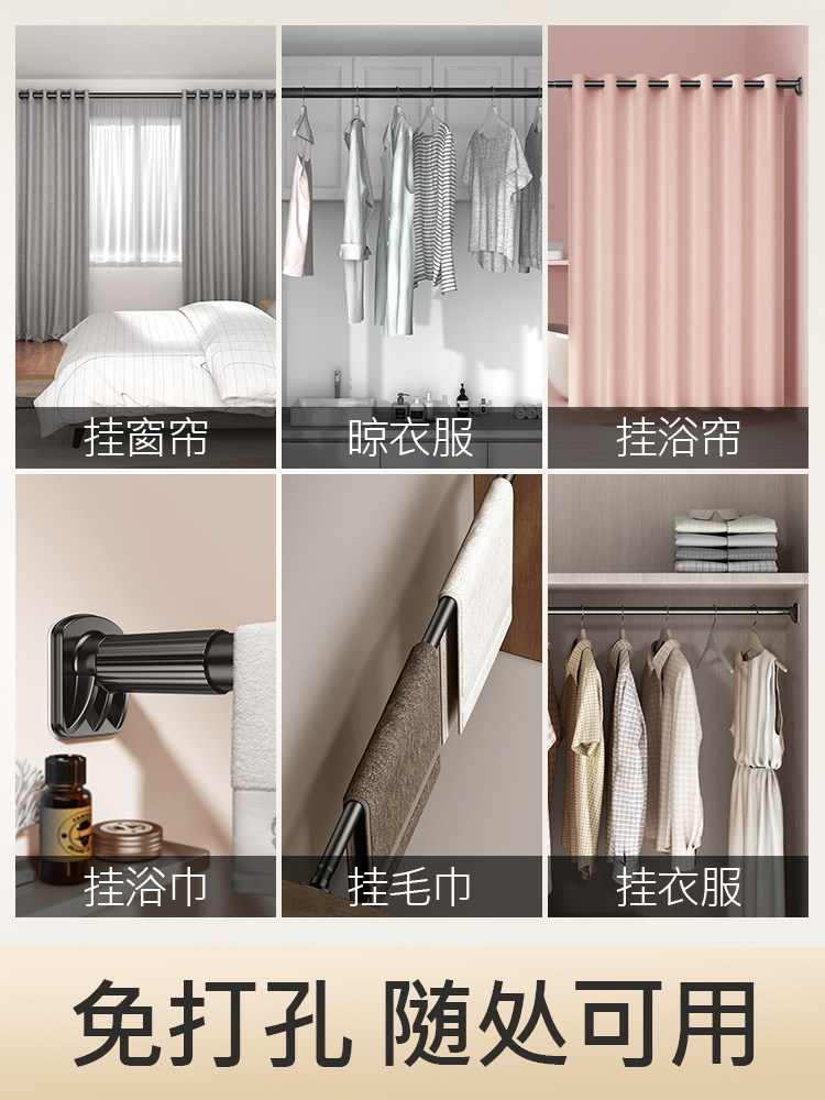 Punch-free clothes rail curtain rod telescopic rod bath curtain rod bedroom shrink drying rack installation Roman pole single pole