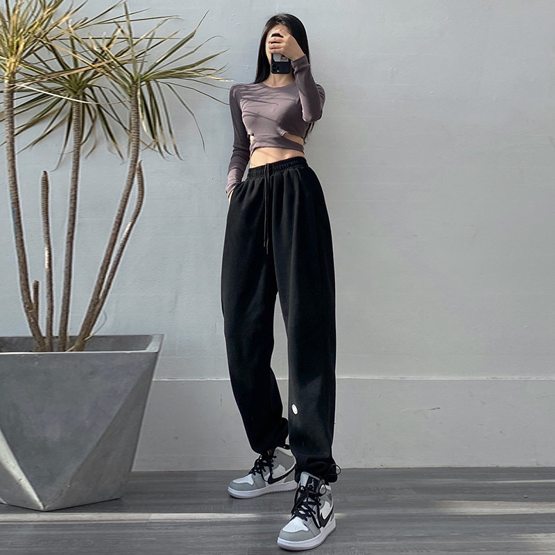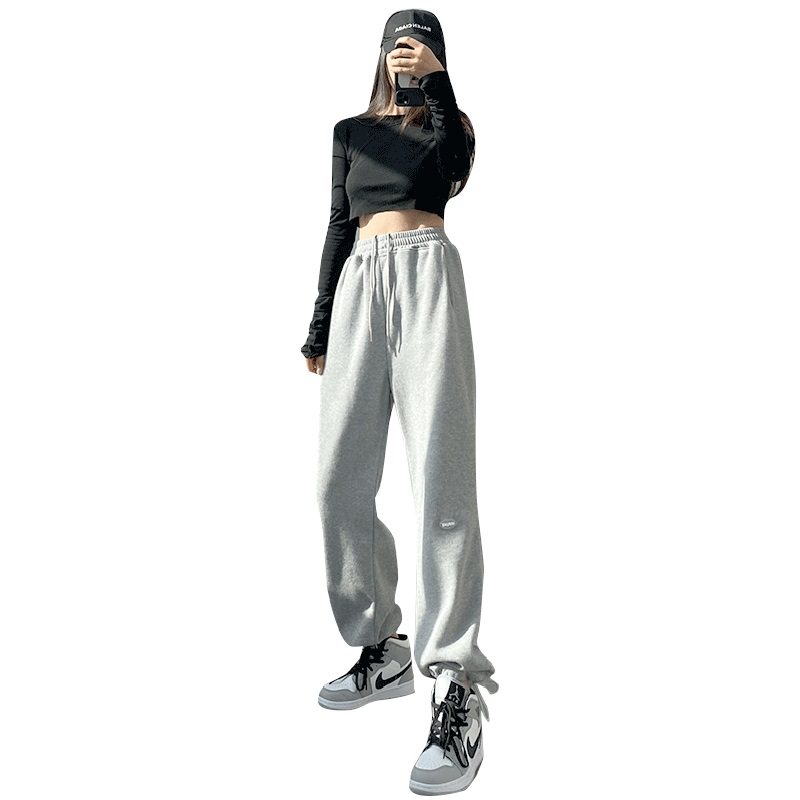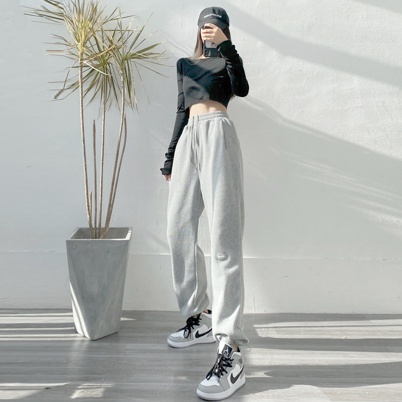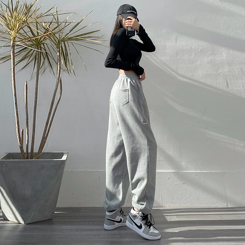 Korean Grey Sports Pants Women Loose Bunches Pants Spring Autumn 2022 New Broadleg Straight Barrel Casual Thick Cotton Pants