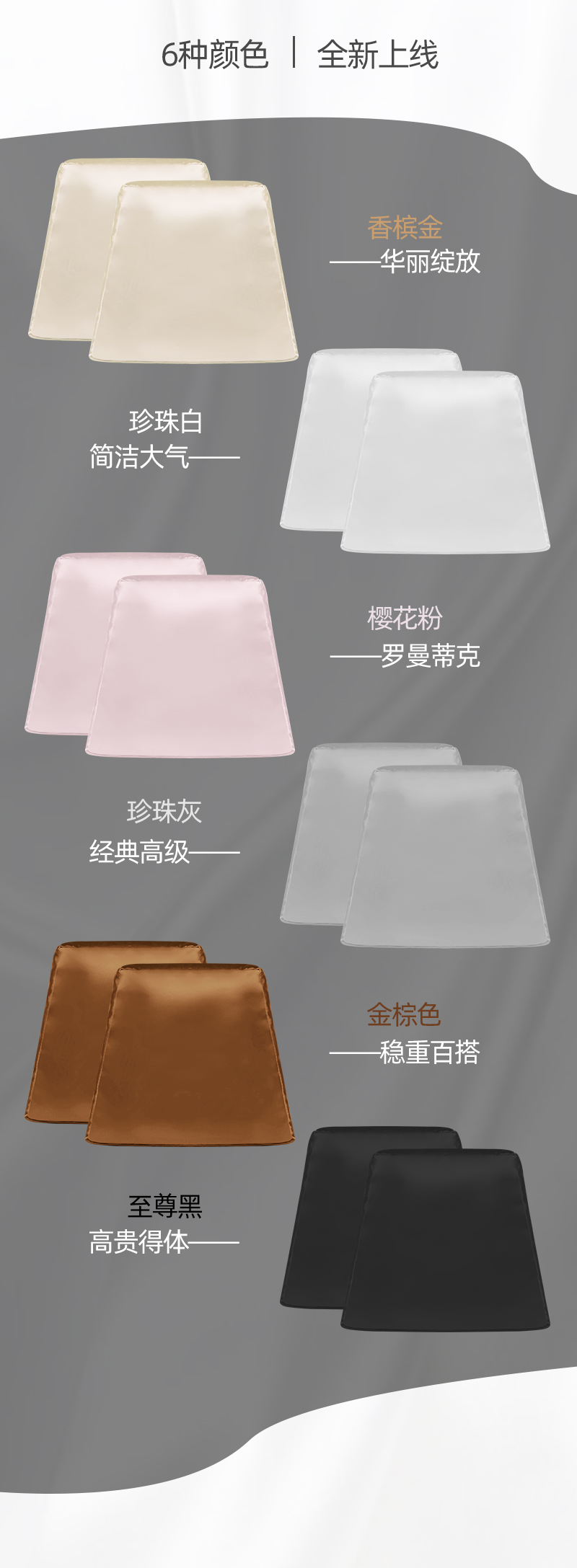 Support (Champagne gold) Backing (Supreme Black) Backing (Romantic powder) Supporting (Pearl white) Backing (Pearl ash)