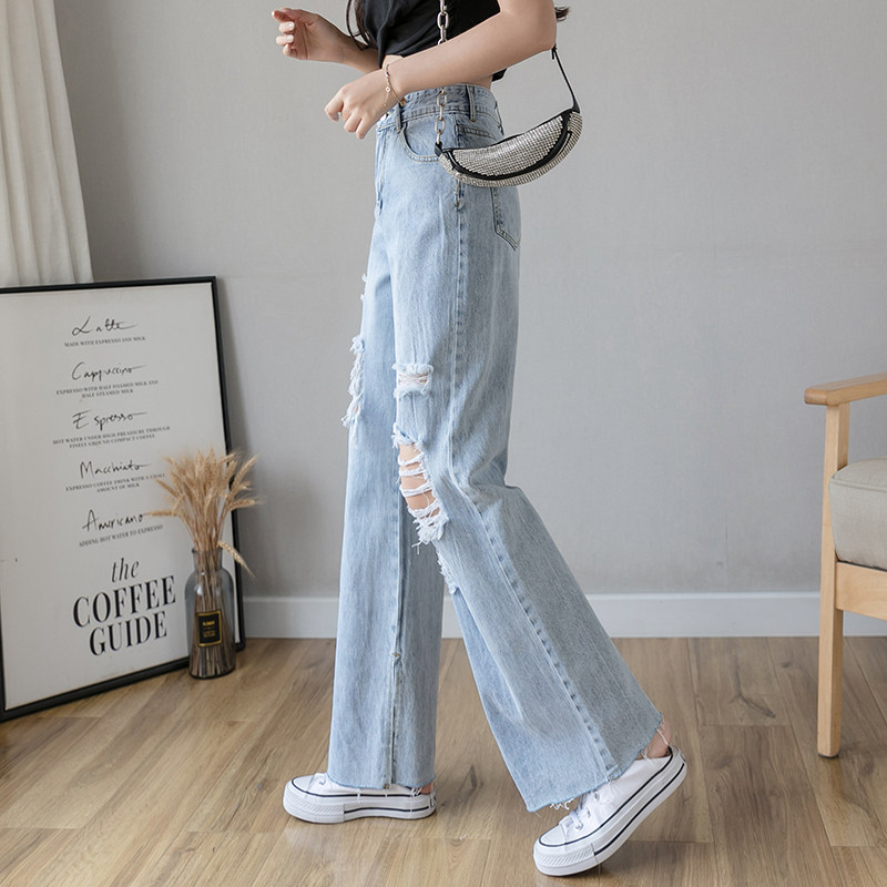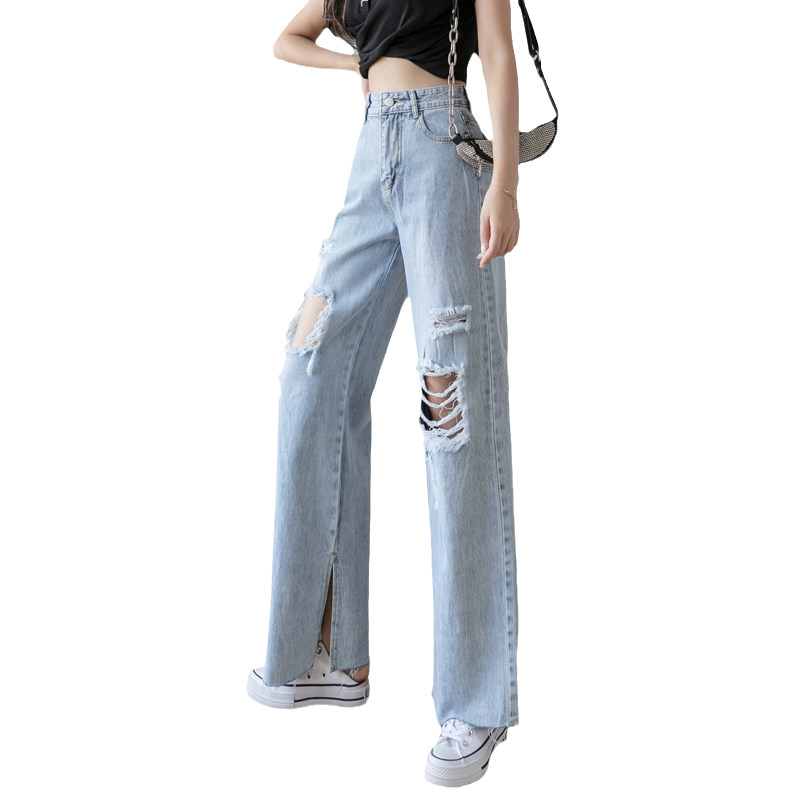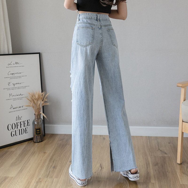 The new straight tube loose high loose, high - waist perception of open leg pants in spring and autumn