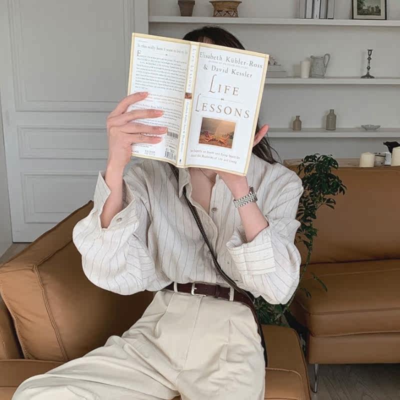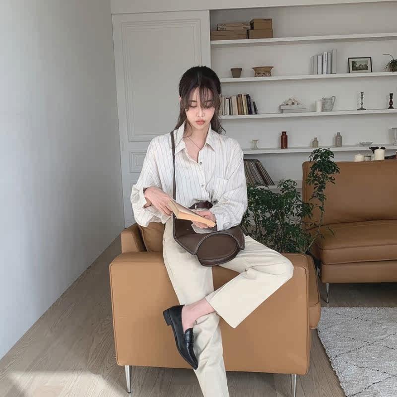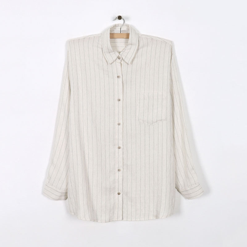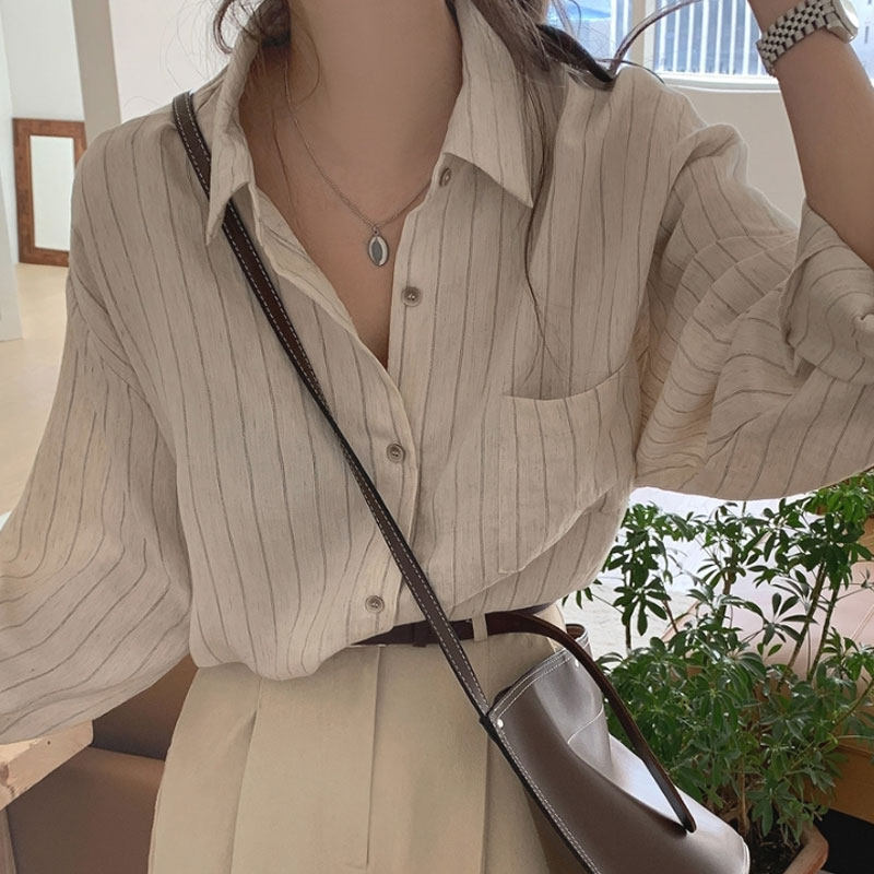 mocobling Korea 21 early spring new cotton simple vertical striped lapel shirt women