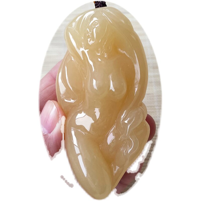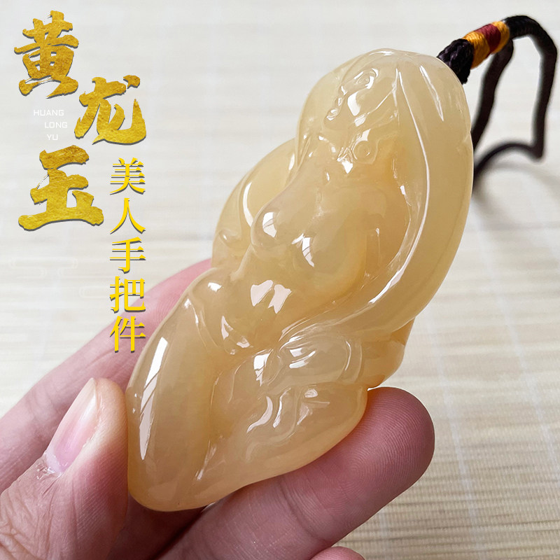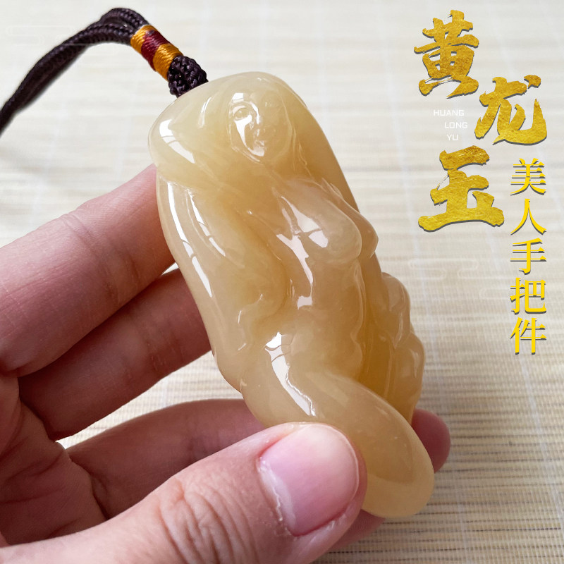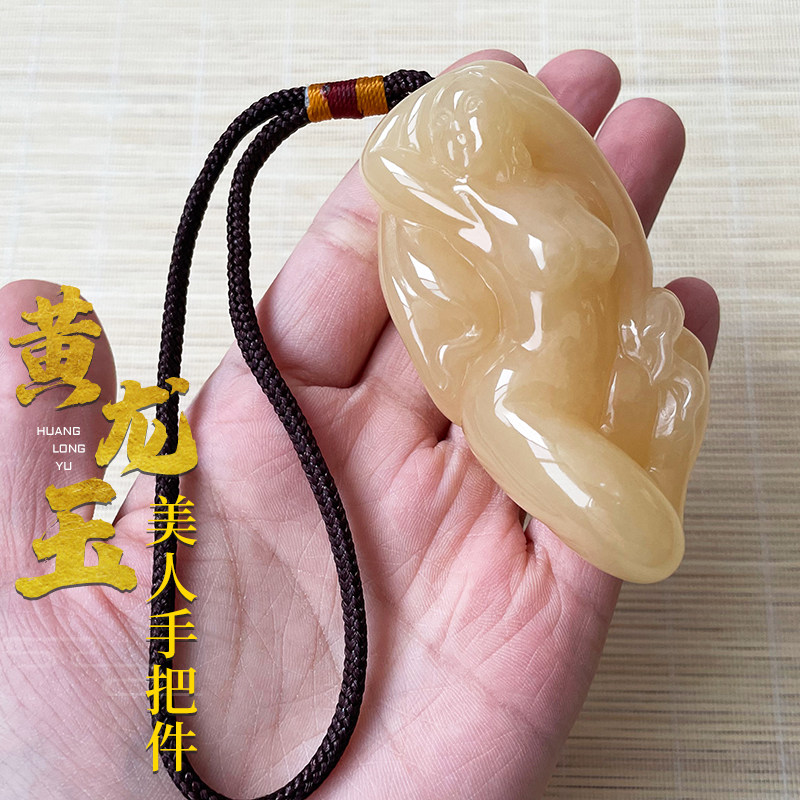 Huang Longyu Beauty handlebar piece male style yellow jade fine material Beauty out of the bath jade meet with your person pendant and take the play piece
