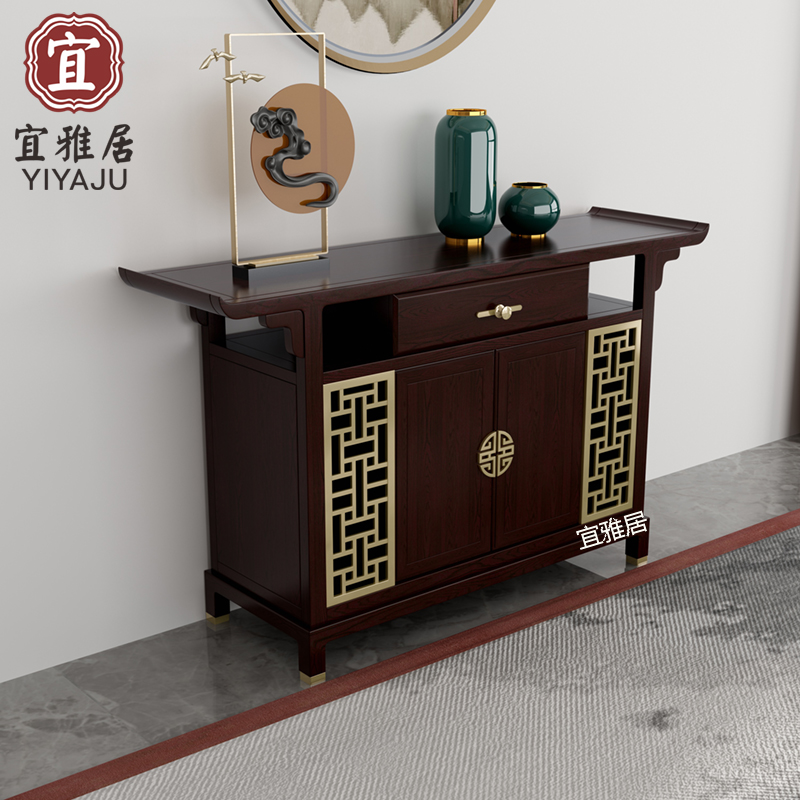 New Chinese Wujin Mu Xuanguan Cabinet Cabinet Office entrance to the family Xuanguan Table solid wood for the desk leaning against the wall Xuanguan Terra desk Case End View Terrace