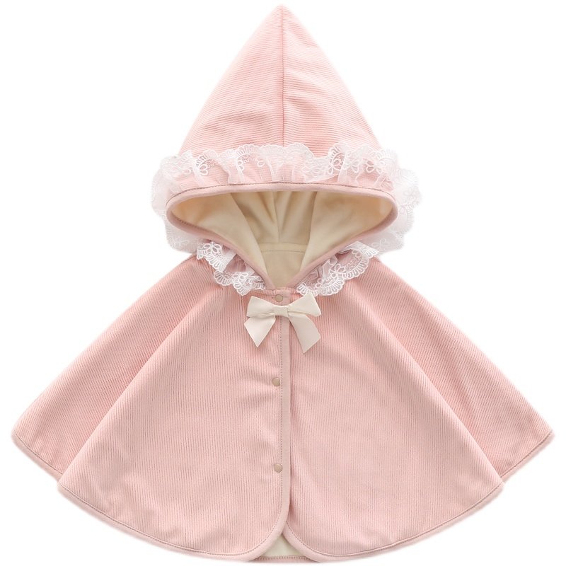 Korean version of princess lace lace cape spring style girl baby out hooded cape children's windbreak shawl jacket