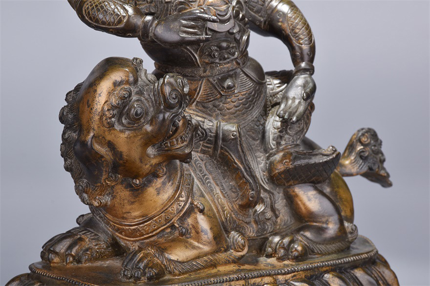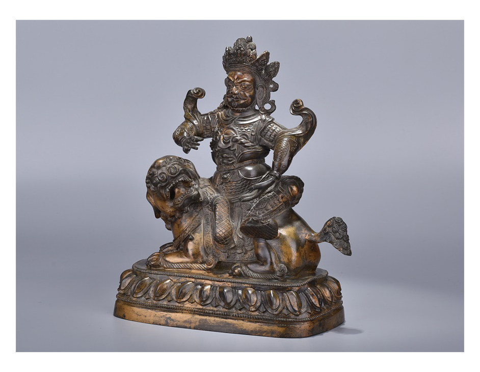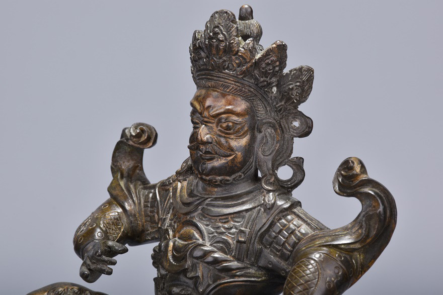 (Ghost City) A1686 The statue of the old purple copper paint golden god of wealth is 21 cm high and weighs 2.98 kg