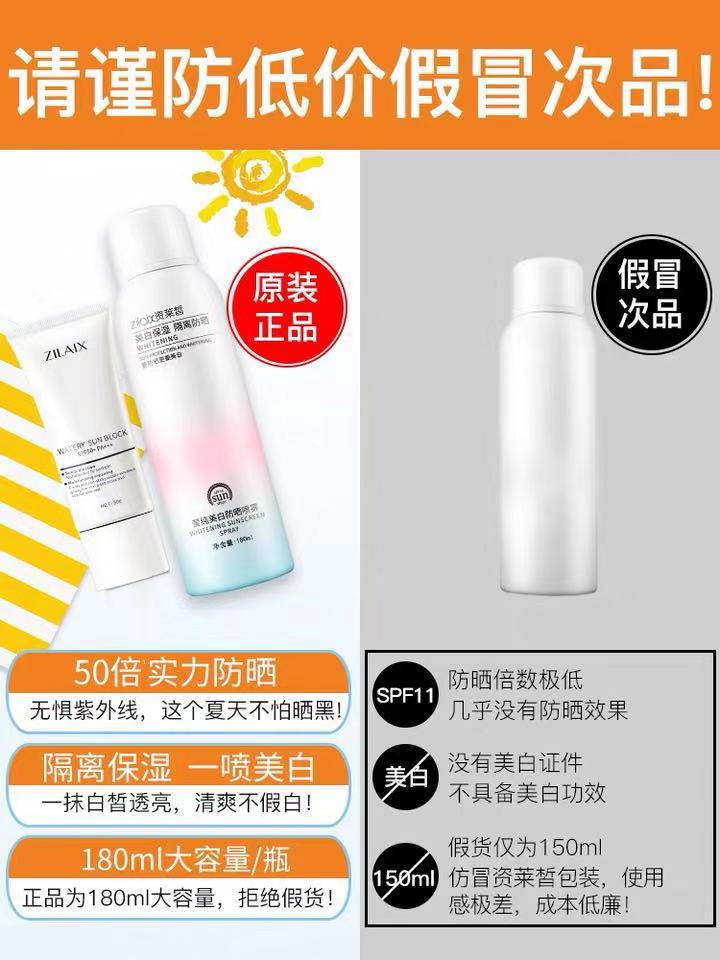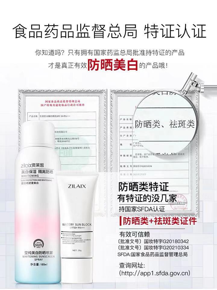 Zilaixi whitening sunscreen spray SPF50 whole body, neck and face isolation UV waterproof military training students