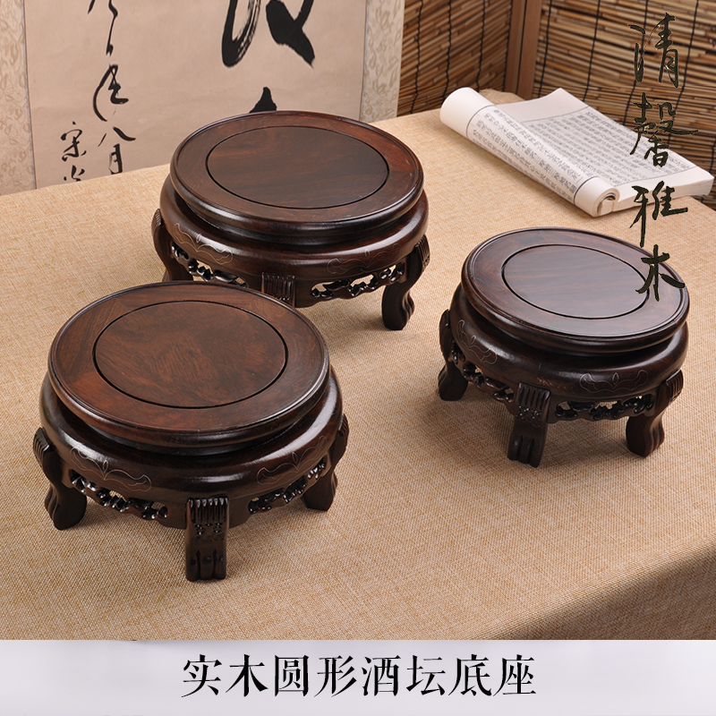 Red wood round wine Wine Bottle Flower Bottle Flower Vase vase Vase Porcelain Bonsai Fish Tank Antique Jade Pendulum base solid wood shelf
