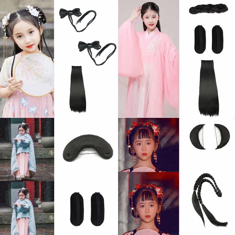 Ancient style children cute lazy hair hoop wig combination novice hand disabled hair bag lazy gospel Joker girl