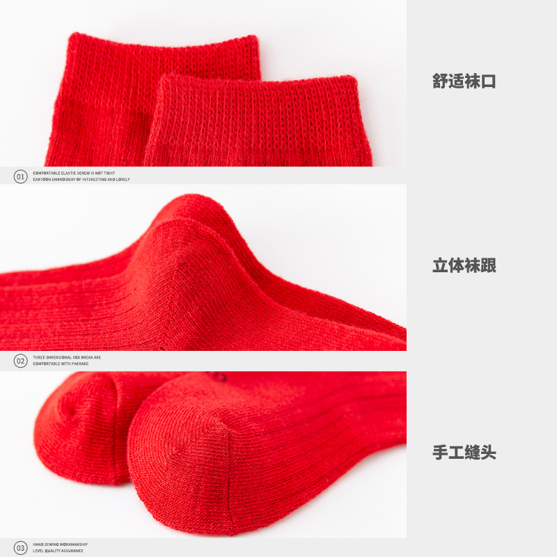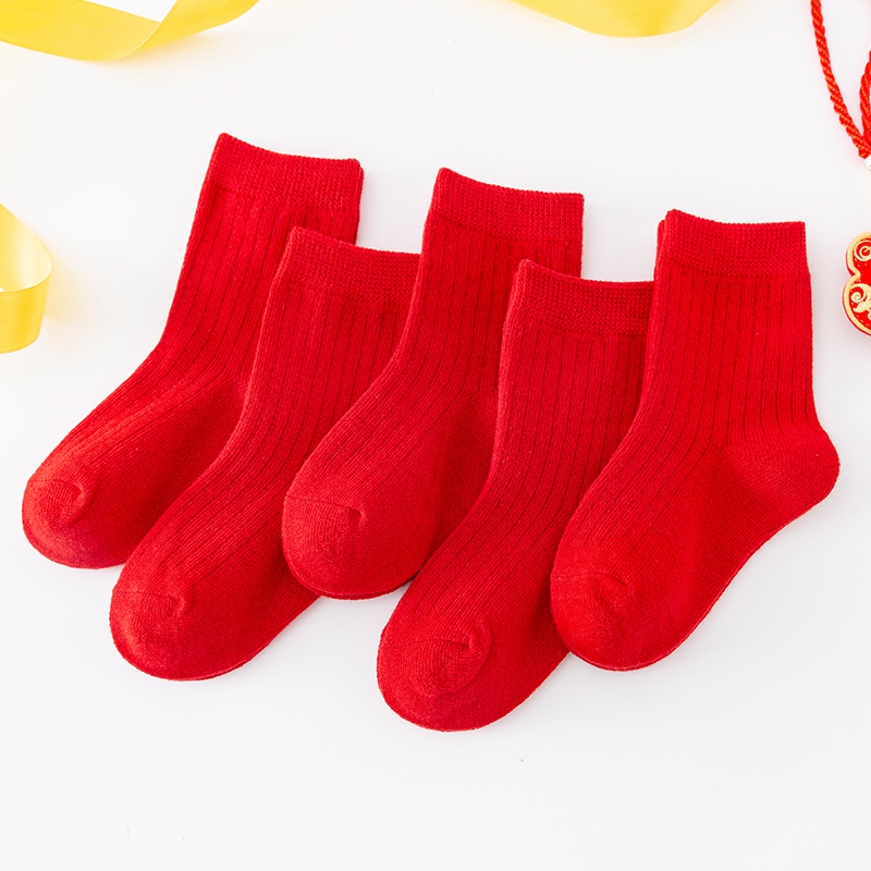 Children's red socks Pure cotton New Year boy girl baby girl baby Chinese New Year socks Tiger year Spring and autumn Winter Children's cotton socks