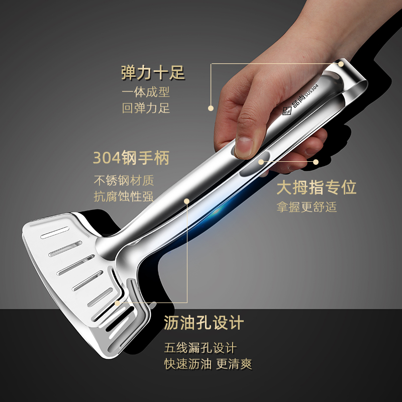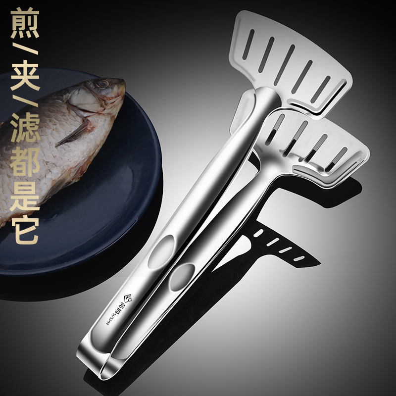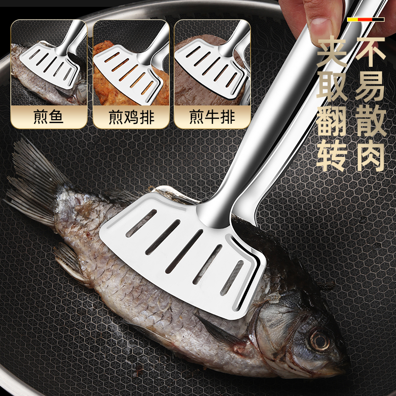 Germany 304 stainless steel fried fish shovel kitchen artifact oil filter clip flip fish shovel clip Household fish clip steak clip