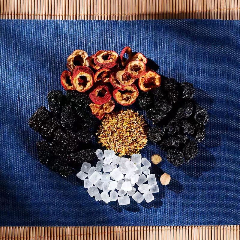 Rock sugar Tianshan Ebony (Plum Green white granulated sugar edible salt citric acid sodium benzoate sodium saccharin sodium potassium sorbate caramel color flavor) Purple crystal jujube (red date water) Hawthorn dried osmanthus fragrans licorice nutmeg edible