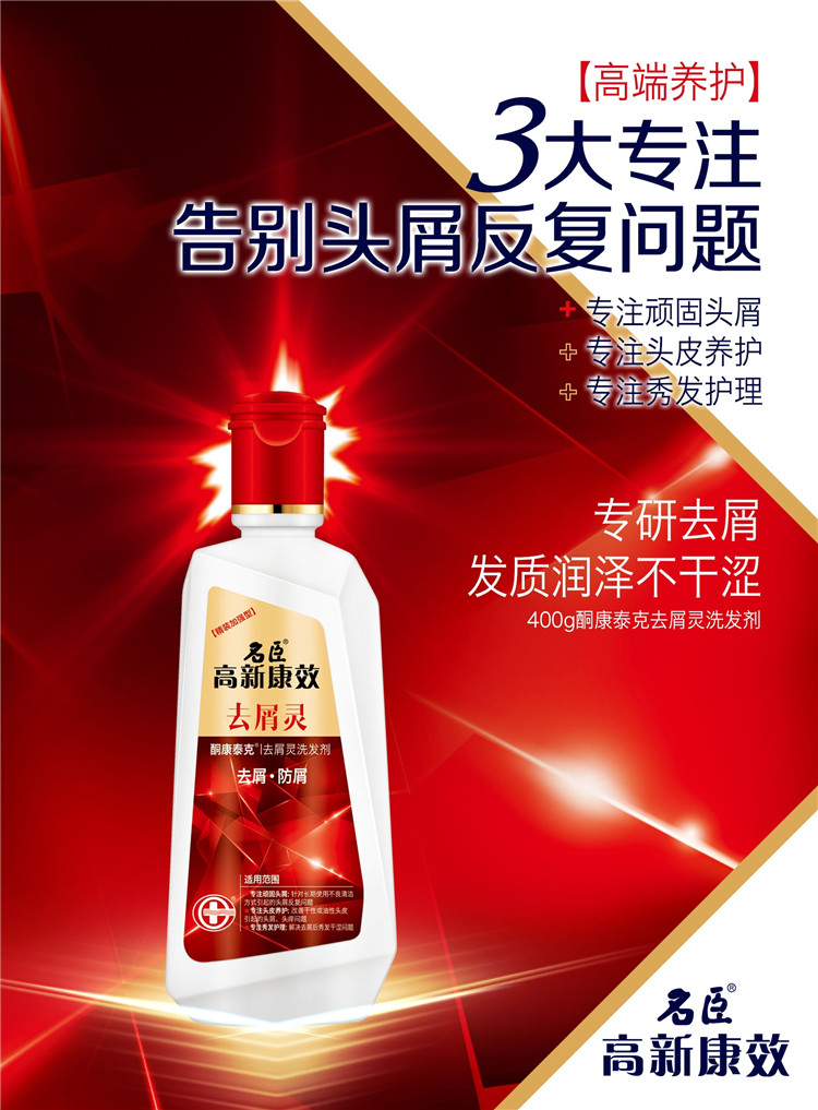 Mingchen high-tech Kang effect anti-dandruff shampoo smooth and nourishing shampoo ketone Contac 400g red bottle to send bath