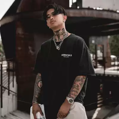 FOG double line ESSENTIALS summer high street print short sleeve men and women Tide brand loose couple T-shirt base shirt