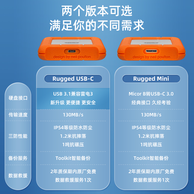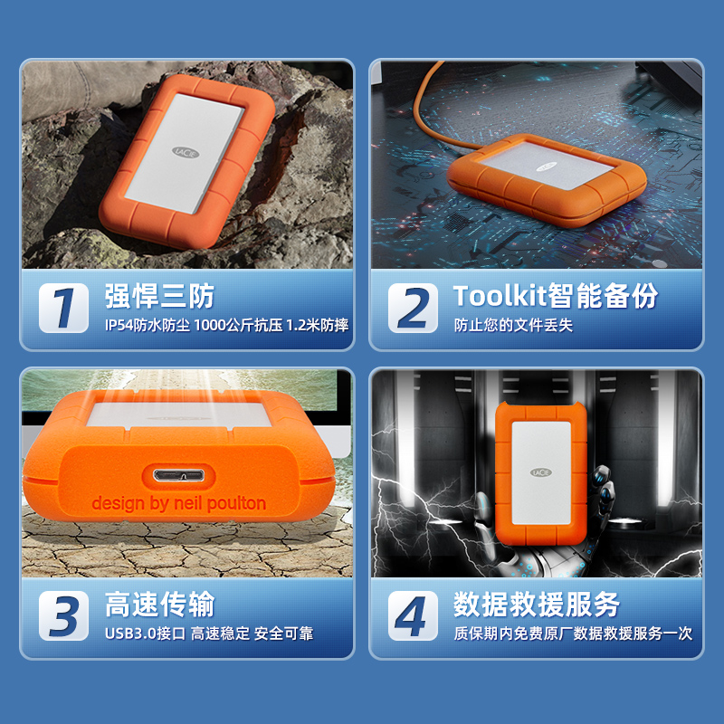 Rez LaCie Waterproof Anti-Drop Anti-Pressure Portable Hard Drive 4TB RuggedMINI High Speed Compatible Mac Large Capacity
