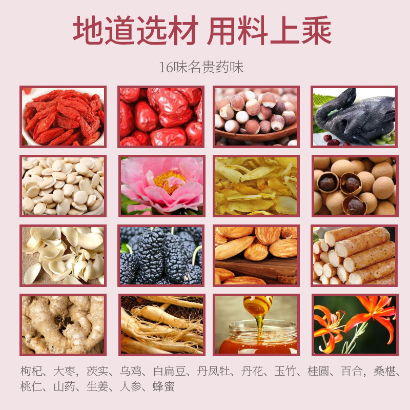 Lycium barbarum red dates Gorgon fruit Silky chicken powder White lentils Phoenix peony flower Yuzhu Guiyuan Lily Mulberry Peach kernel Yam