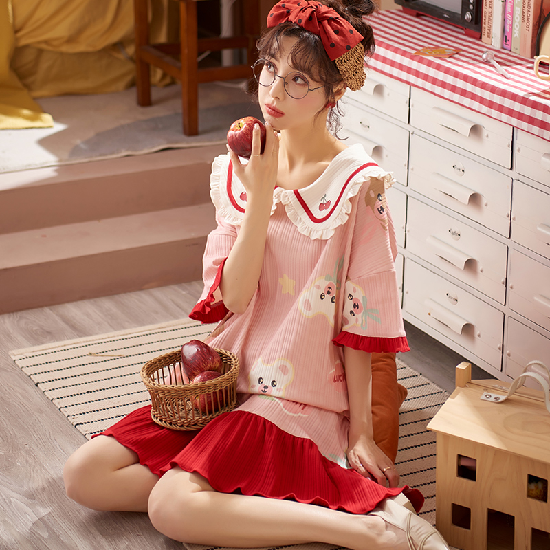 Japanese sweet cotton pajamas women's 2021 new summer short-sleeved explosive models can be worn outside spring and Autumn home clothes women