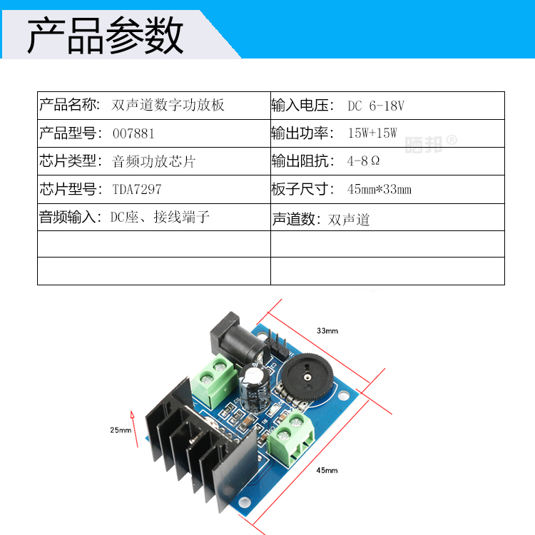 TDA7297 Digital Power Amplifier Board Module 2 0 Dual Channel 2*15W Low Noise Audio Amplifier DC6-18V