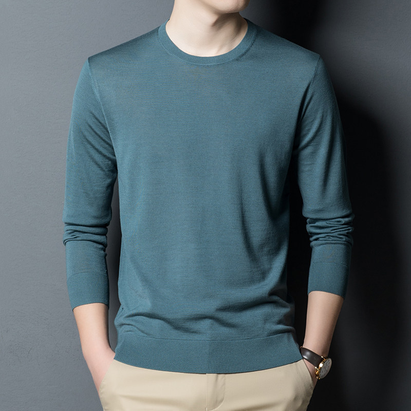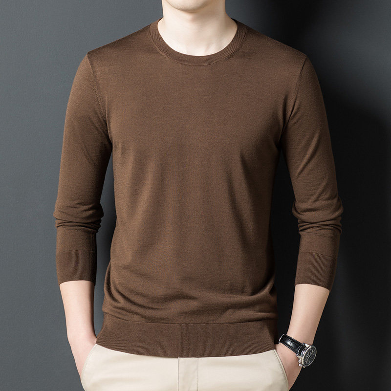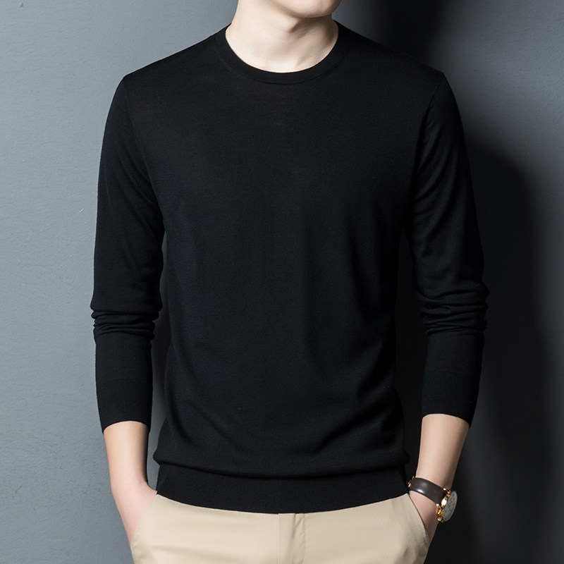 Spring and autumn round neck sweater long-sleeved men's thin sweater worsted non-sensing pure wool sweater men's inner bottoming shirt