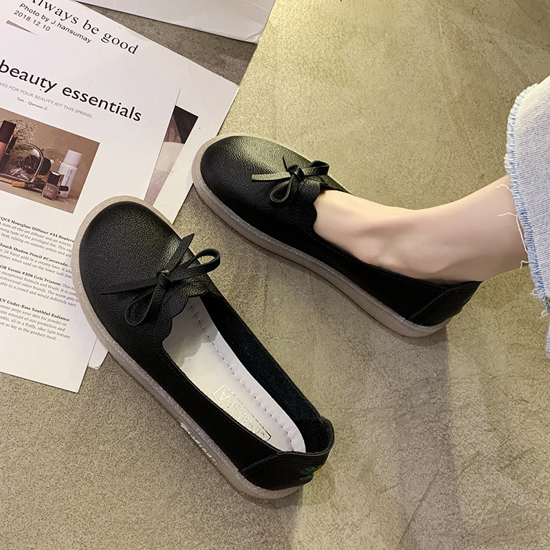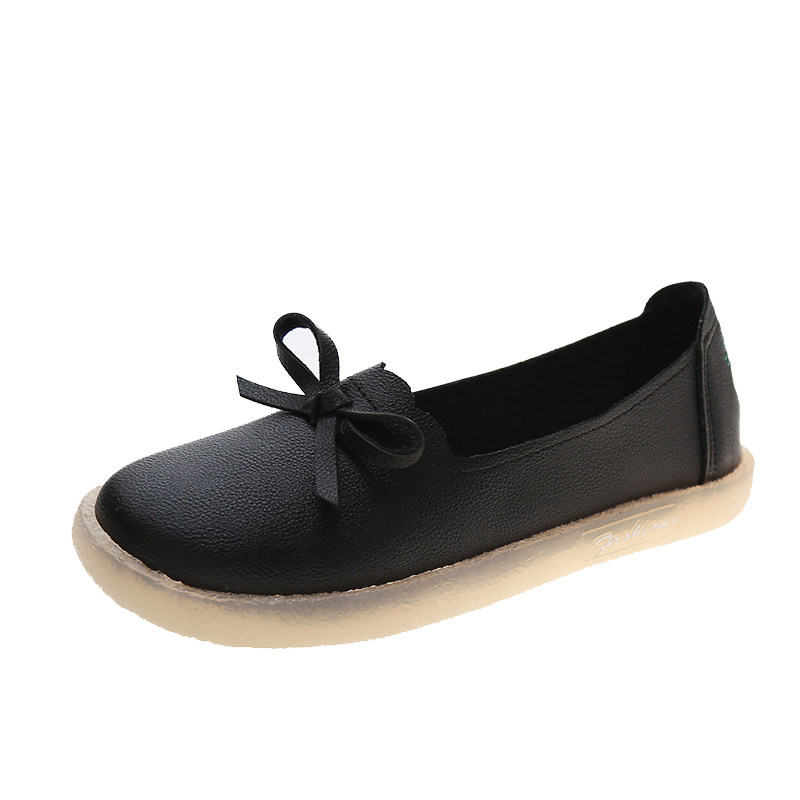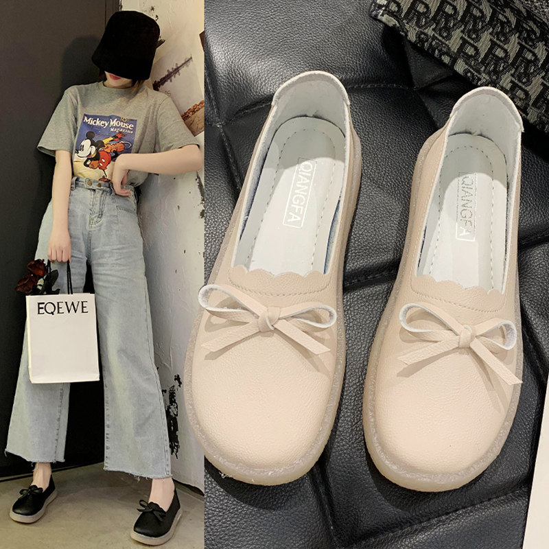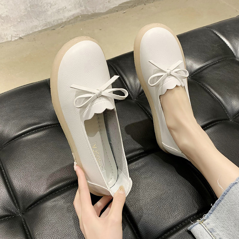 Beef Tendon Soft Bottom Bean Bean Shoes Women 2021 Spring Autumn New Bow Tie Non-slip White Nurse Shoes 100 hitch Shallow Mouth Single Shoes
