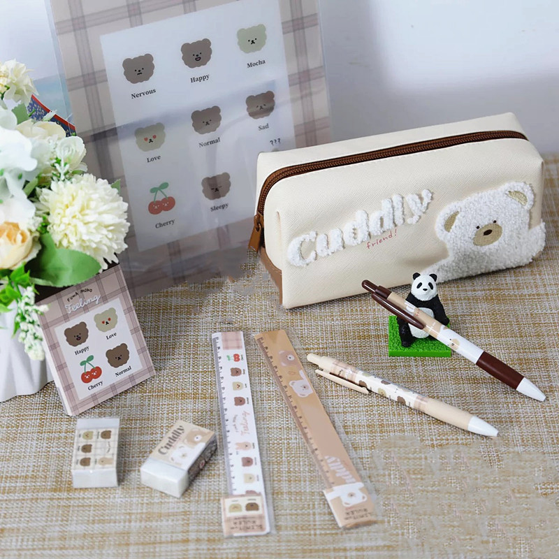 Japanese ins cute cartoon latte bear large-capacity student stationery pencil case high-value girl heart pencil case female