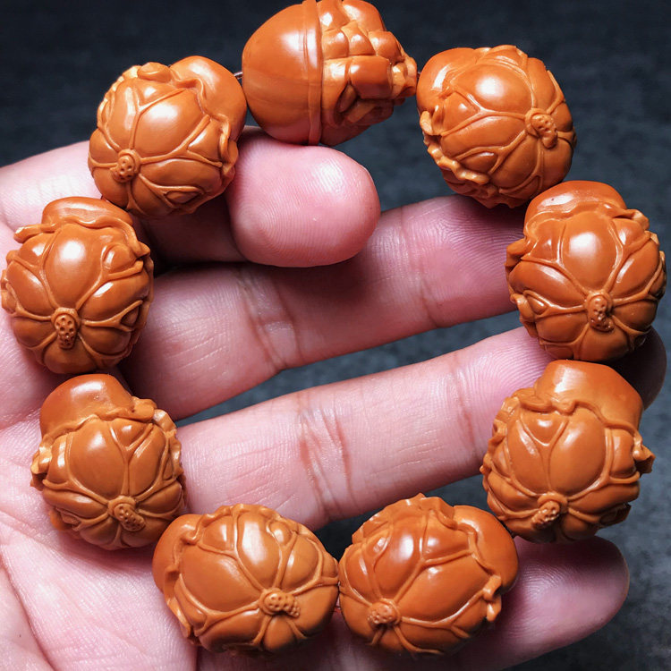 Sunangong 2 0 eight lotus leaf gods of wealth near the perfect circle pure handmade olive core carving crystal core play bracelet string