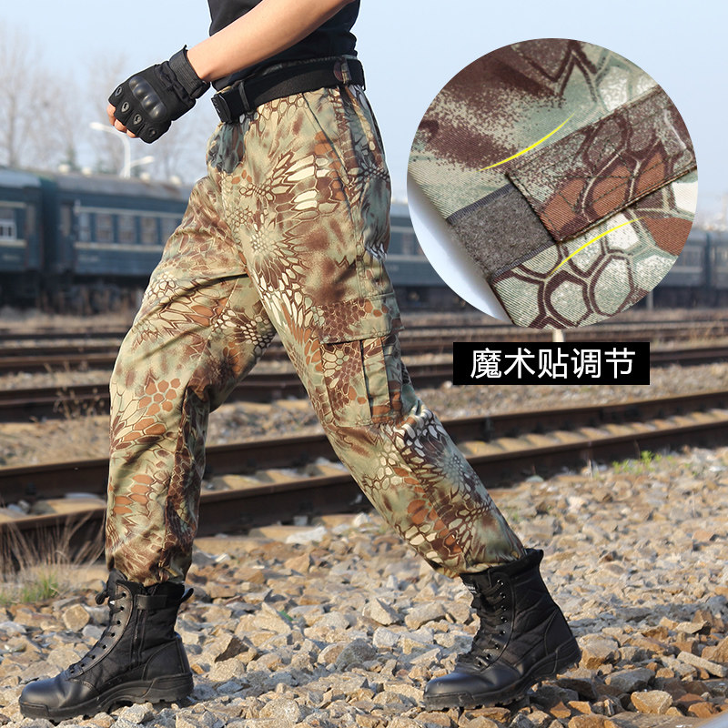 Outdoor bionic all-terrain python pattern camouflage pants men's loose army fan hunting pants labor protection overalls tactical wear-resistant