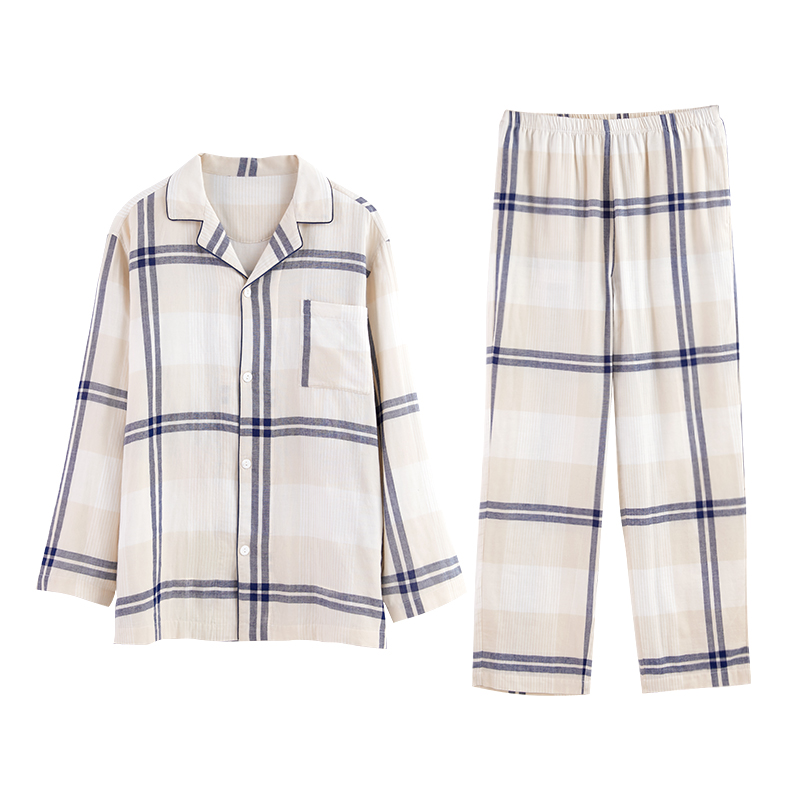Red bean couple cotton pajamas men's long-sleeved trousers spring and summer casual plaid ladies cotton homewear