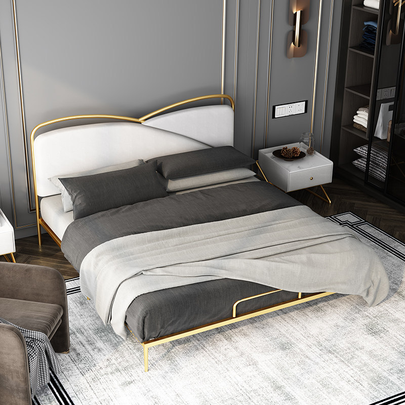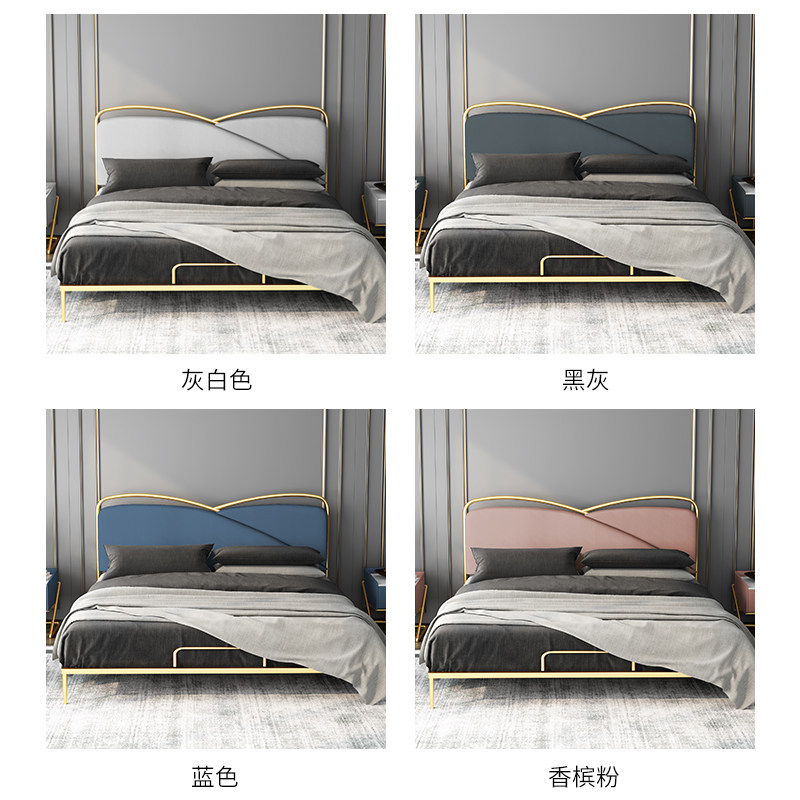 Gold frame Gray and white upholstered bed frame Gold frame Blue upholstered bed frame Gold frame Champagne pink upholstered bed frame Bed frame Latex mattress (remark the required color when ordering) Bed frame Matching headboard