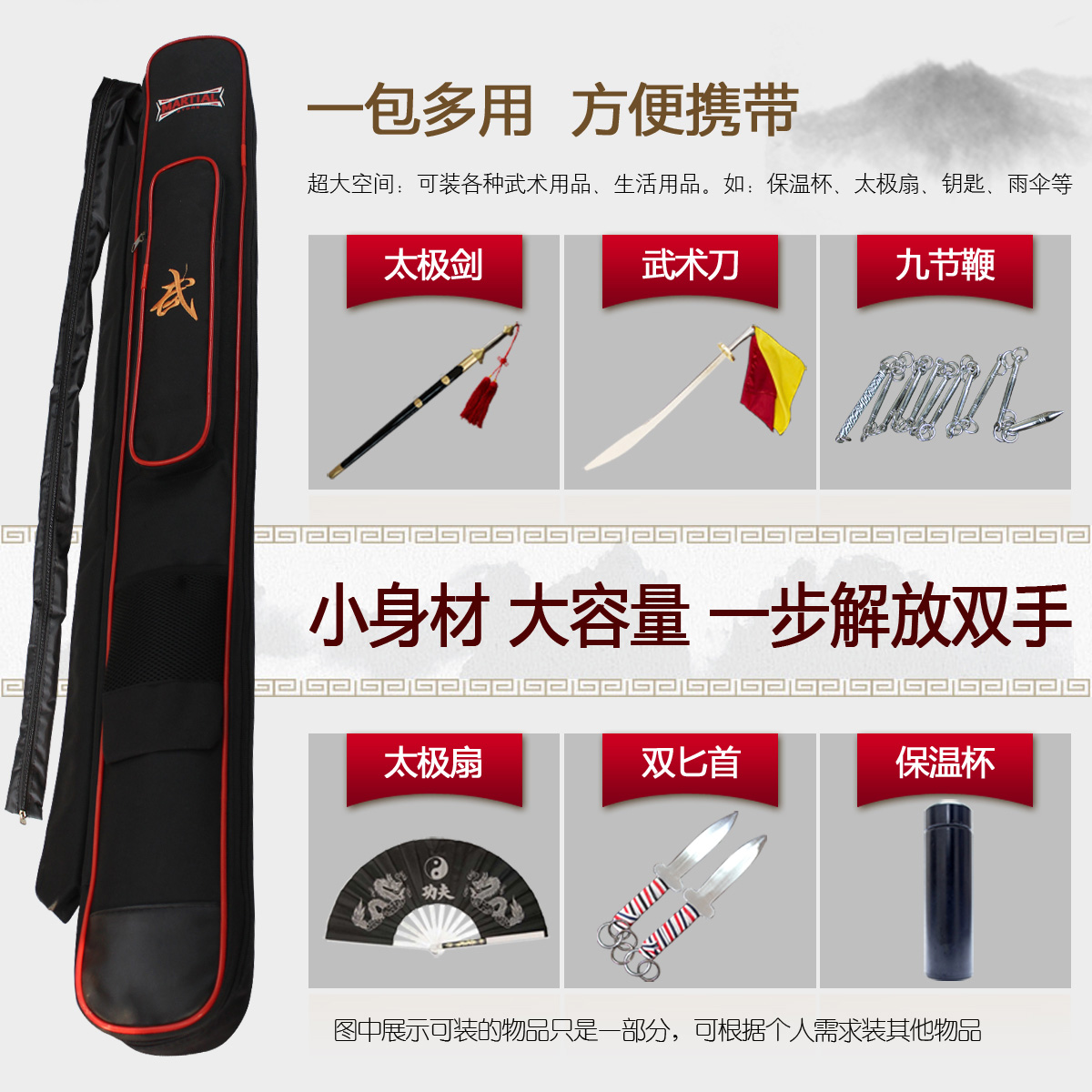 Martial arts equipment bag sword bag sword stick bag equipment bag double-layer bag Tai Chi sword bag stick bag Nan Dao bag Tai Chi knife