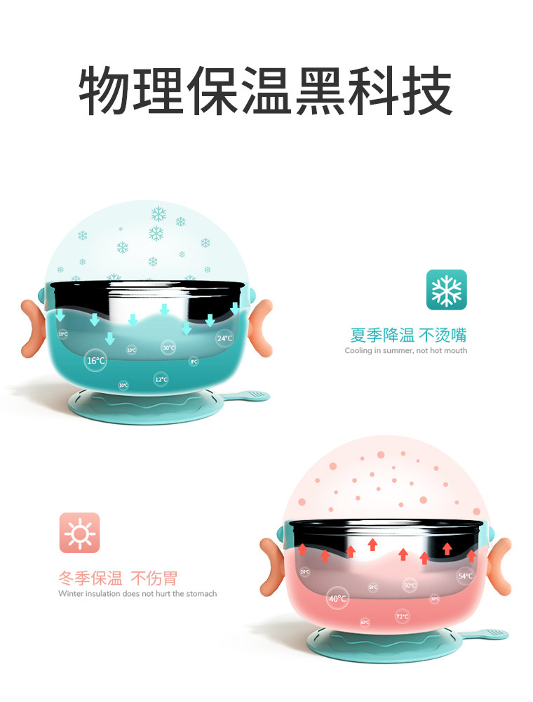 Baby food supplement bowl water injection insulation bowl spoon set suction cup bowl washable baby anti-fall anti-scalding children's tableware set