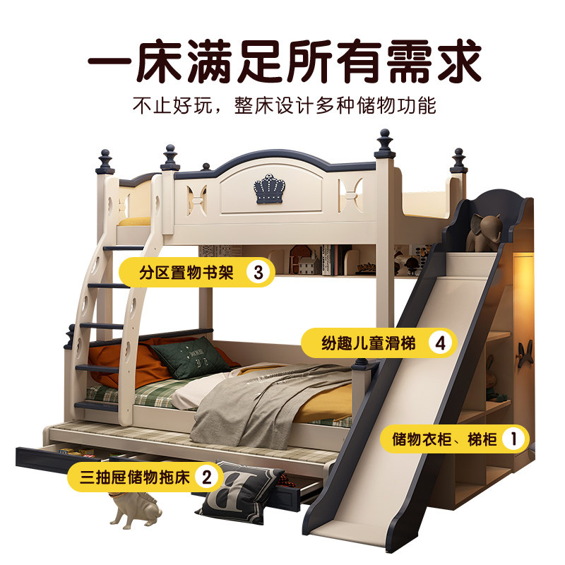High and low beds + mattress * 2 (optional blue pink) bed + mop bed + mattress * 2 beds + drawer ladder cabinet + mattress * 2 beds + wardrobe ladder cabinet + mattress * 2 beds + slide + mattress * 2 beds + dragging bed + drawer ladder cabinet + mattress * 2 beds + dragging bed + wardrobe ladder cabinet + mattress * 2 beds + dragging bed + slide + mattress * 2 beds + drawer ladder cabinet + slide + mattress * 2 beds + stairs + mattress * 2 beds + stairs + 2 beds + drawer ladder cabinet + slide + mattress * 2 beds