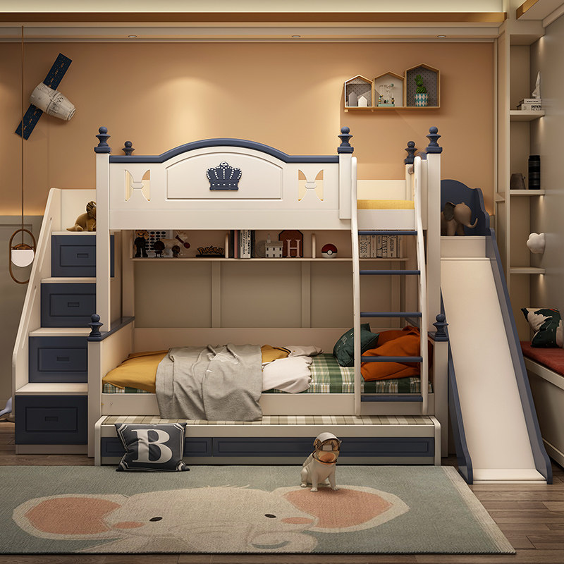 Bunk bed with slide mother bed dragging bed two floors high and low bed boys' cribs multifunctional solid wood