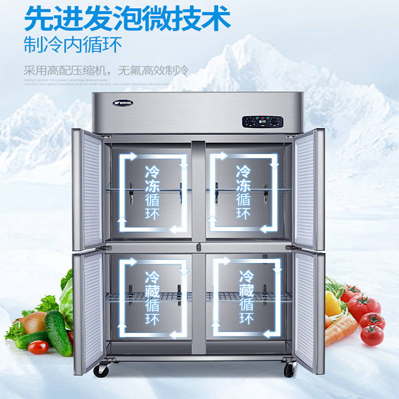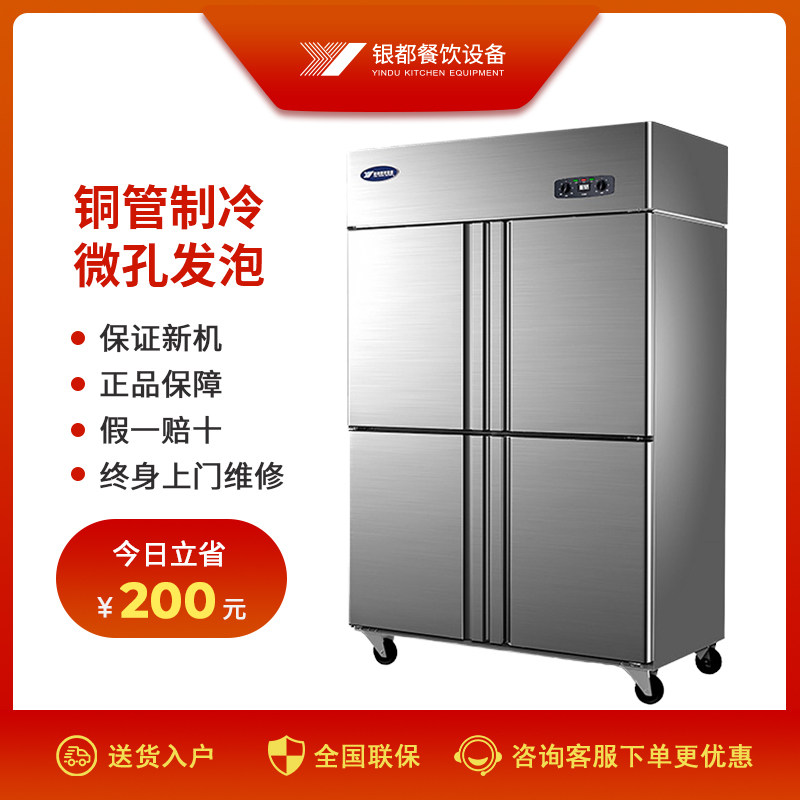 Yindu four-door refrigerator commercial display cabinet freezer fresh-keeping cabinet freezer kitchen electric double machine double temperature stainless steel