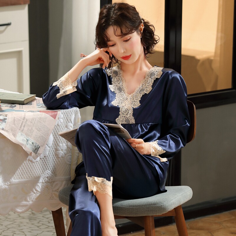Wedding Pyjamas Woman Spring Autumn Money Long Sleeves Slim ice Silk Home Suits Newlywed Bride Suit This Life of Silk