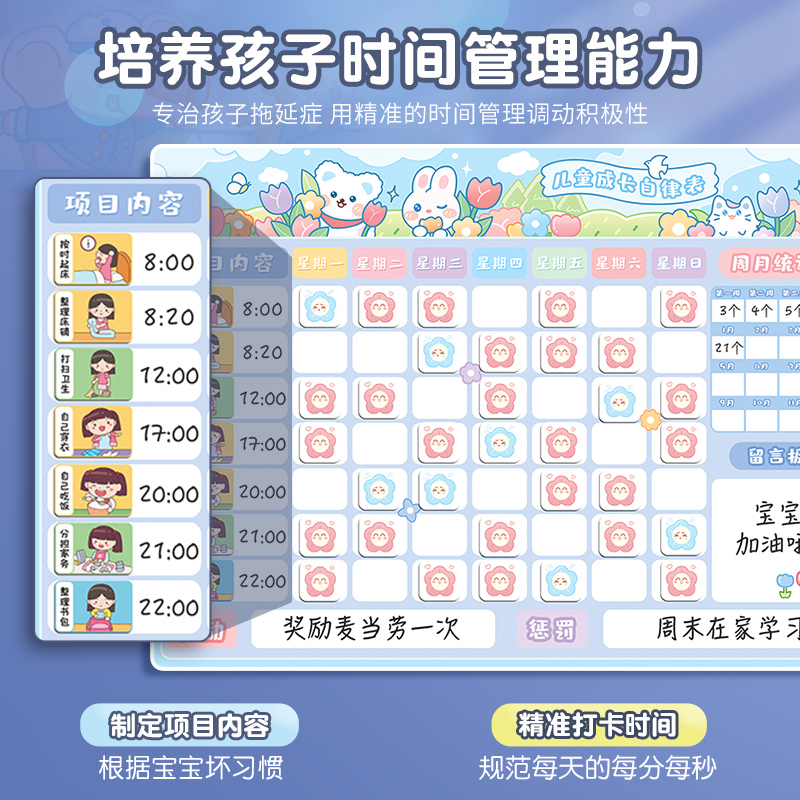 Children Time Planning Table Primary school students grow self-discipline Divine Instrumental Schedule Management Play Card Study Life Information Law Arrangement Behavior Good Habit Formation Credits Bonus Wall Stickers Plan Table