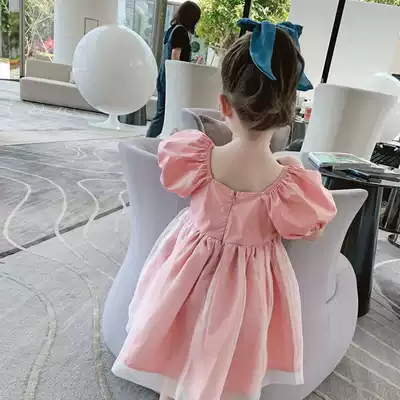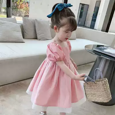 Girls Dress Summer 2021 New Net Red Pure Color Princess Dress Children Bubble Sleeve Long Skirt Baby Dress
