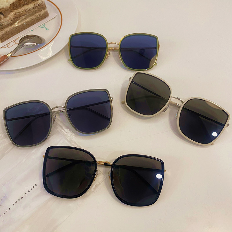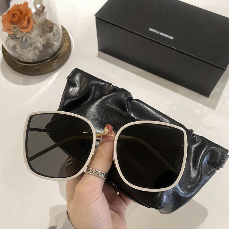 GM sunglasses women's 2021 new milky white frame big face slim bibi fashion street shot with the same square sunglasses