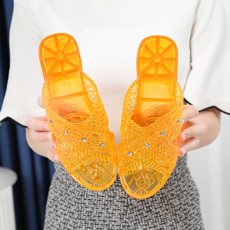Jelly Crystal Sandals Sandals Shoes Women Summer Fashion Nets Red Mother Lined the new slopes are worn outside the seaside anti-slip slippers