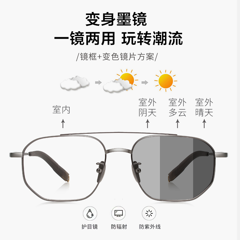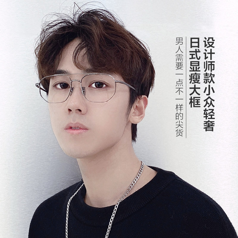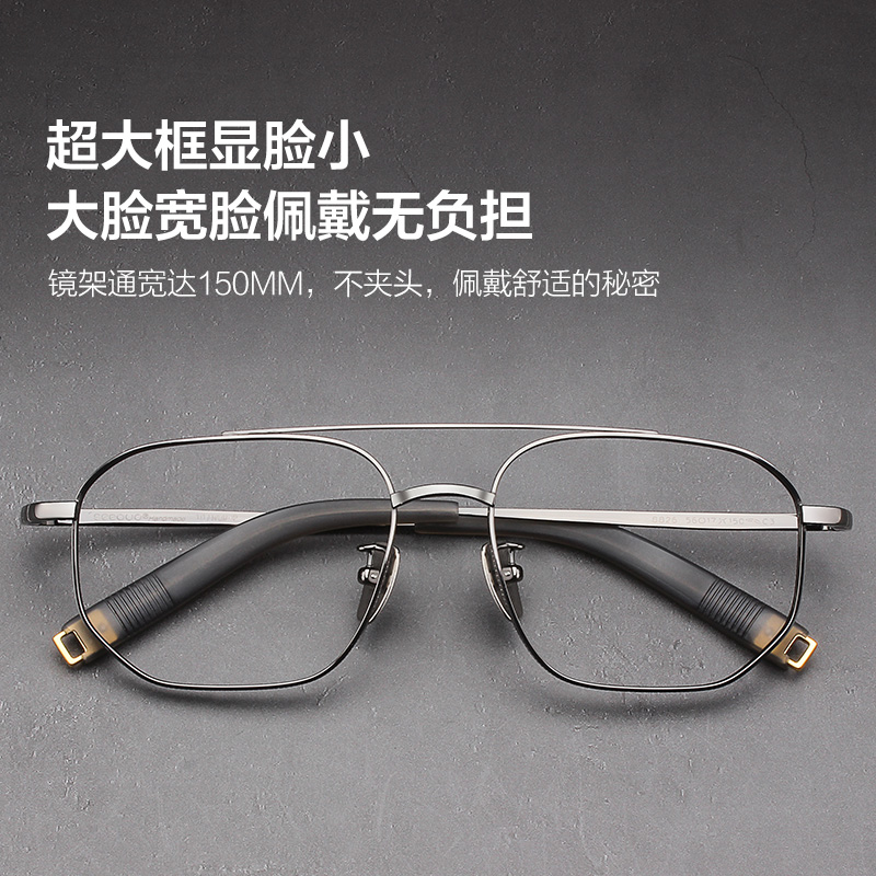 Human mechanics Pure titanium double beam super large face glasses frame widened large frame color-changing myopia glasses men can match the degree tide