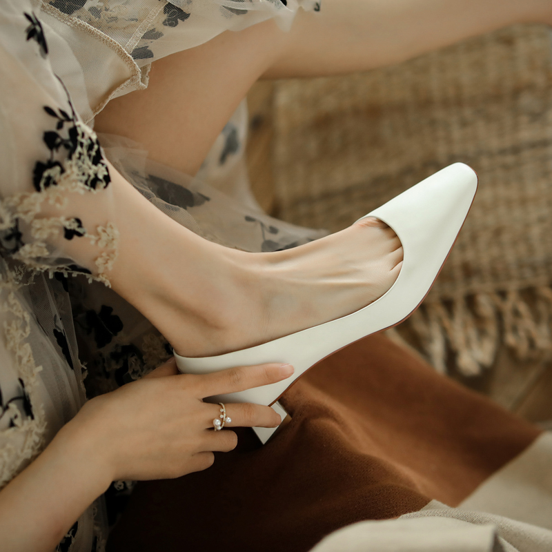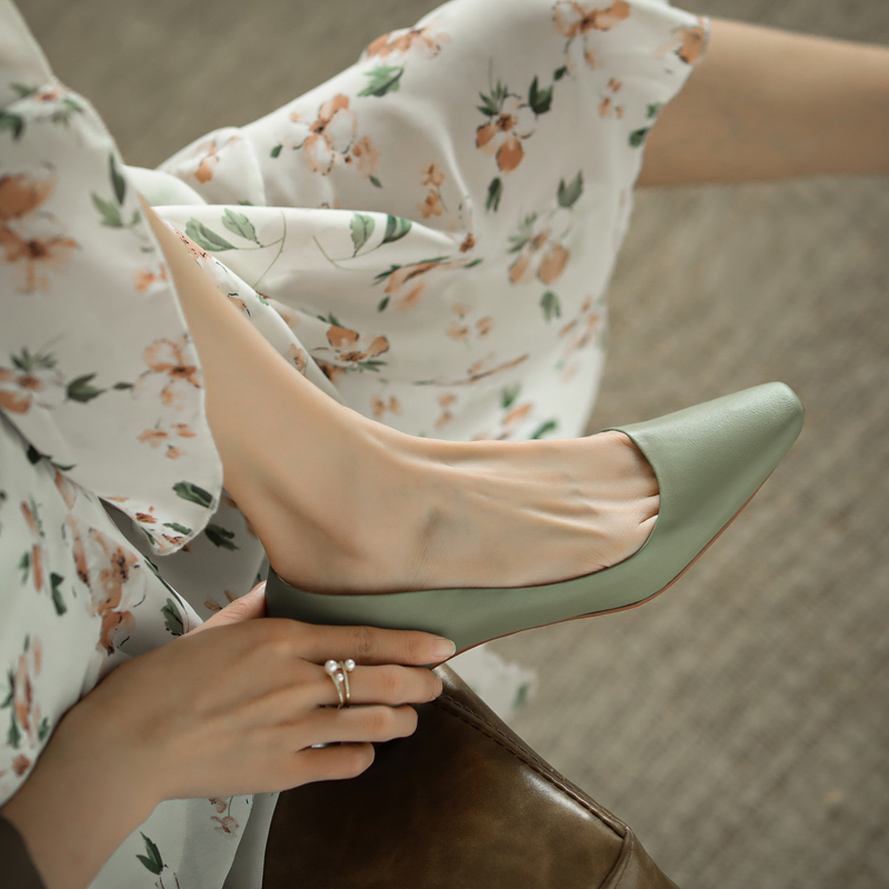Spring-style women shoes 2021 New bag shoes women with genuine leather heels heel leather heel leather heel leather