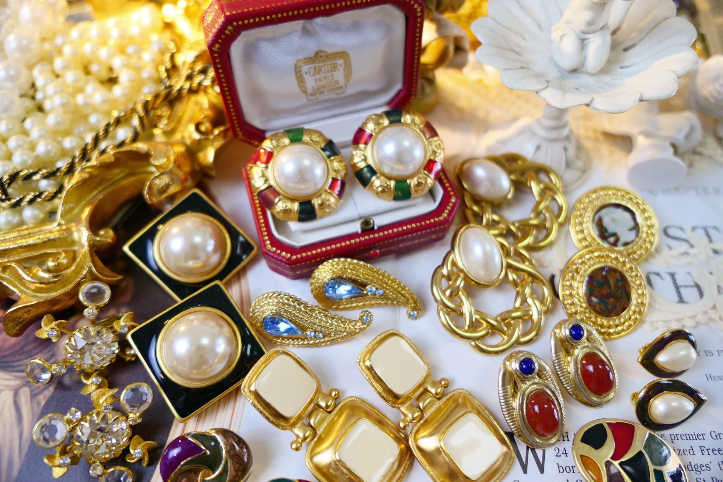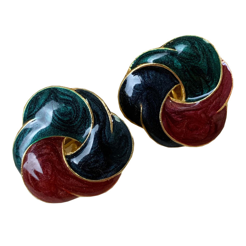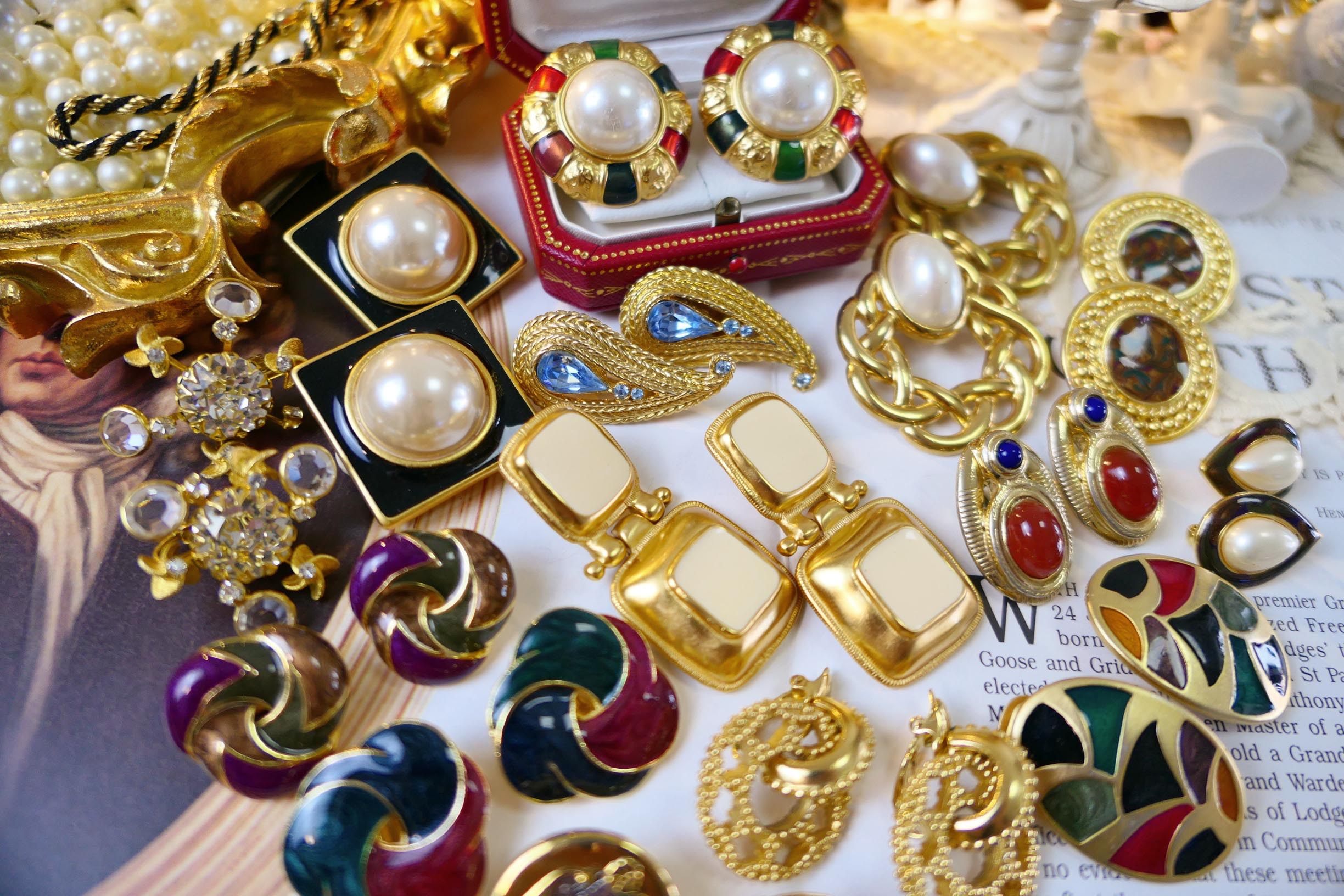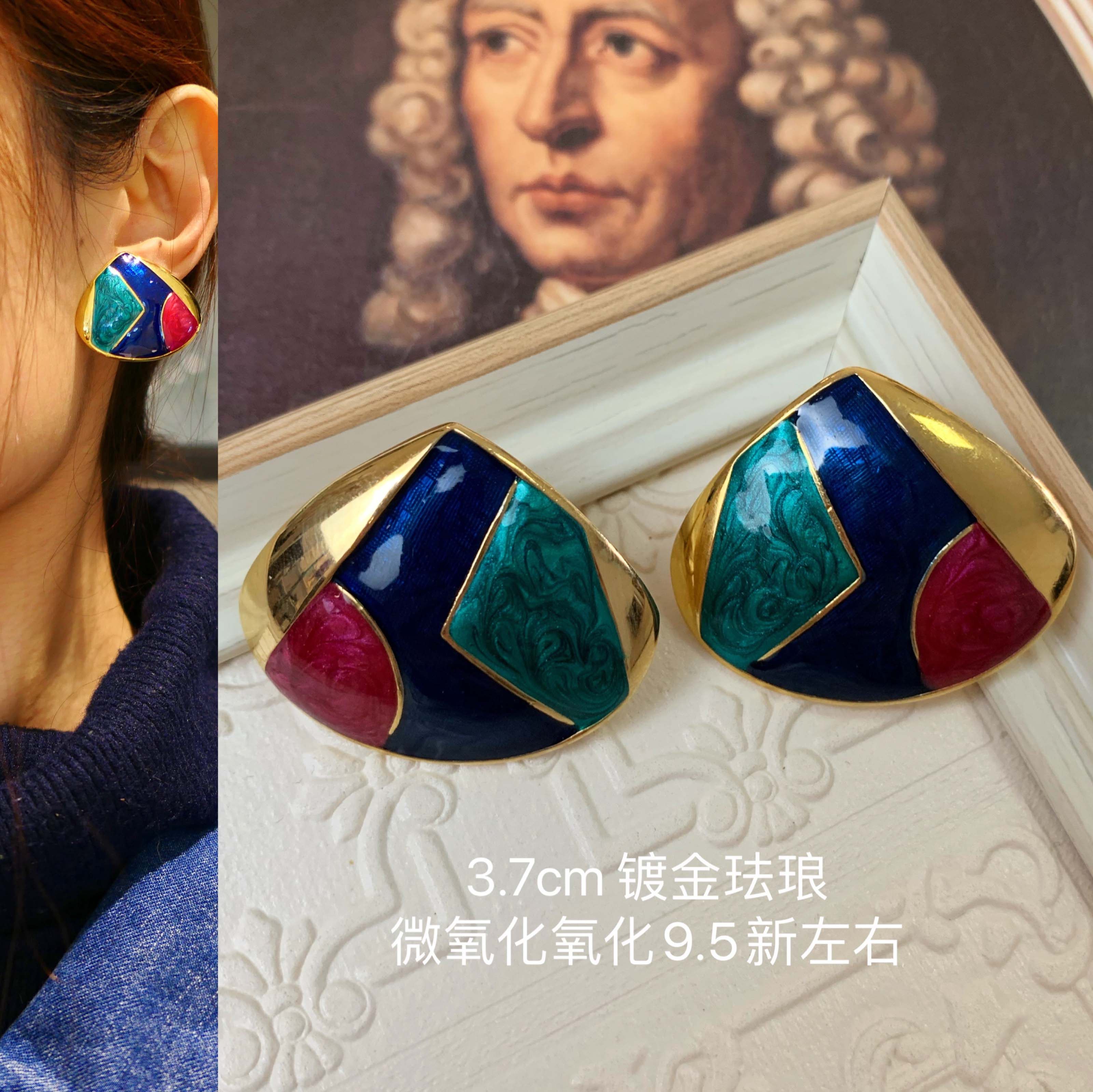 Milky white white beige light gray dark gray gray silver rose pink gold champagne (VINTAGE sold not refundable) A-gorgeous gold-plated enamel ear clip B-classic black