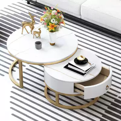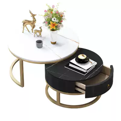 Rock plate coffee table Simple modern small apartment round coffee table TV cabinet combination living room household marble round coffee table