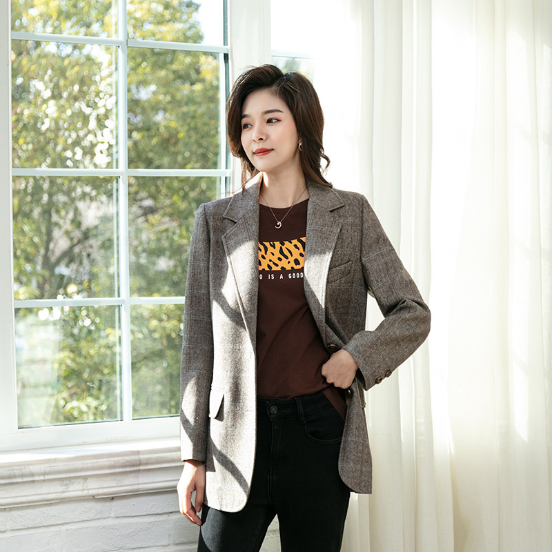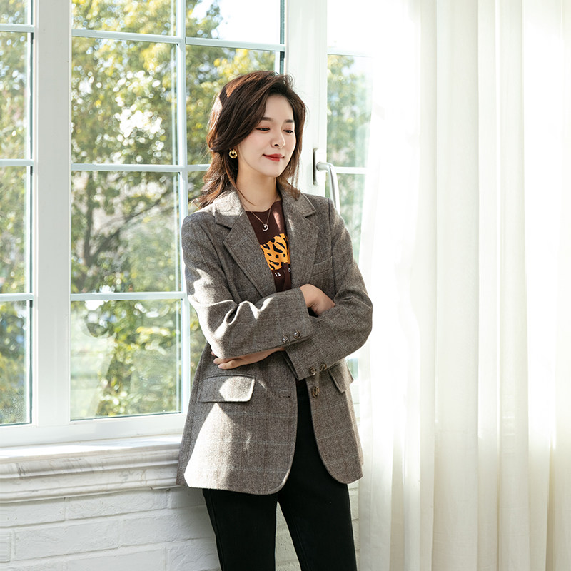 Plaid wool Suit Jacket Woman Short 2021 The new Korean version of the new Korean version of the spring and autumn and the small sub-Taobao