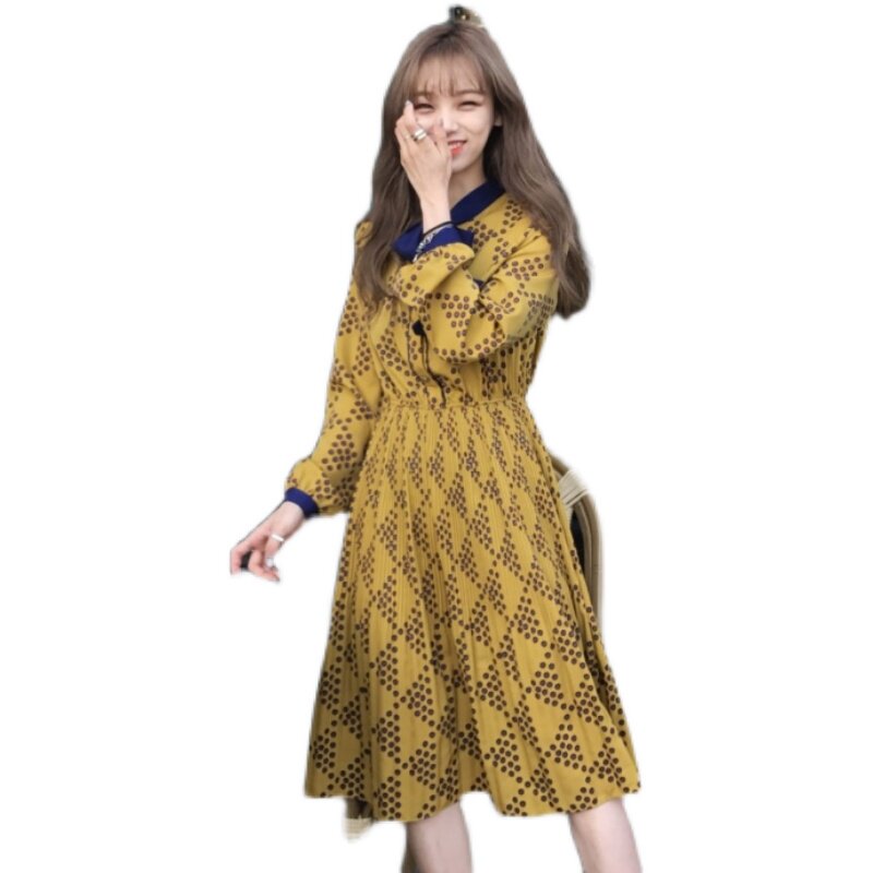 Cold wind high-end spring women's clothing 2022 new French retro chiffon polka dot pleated dress Hepburn