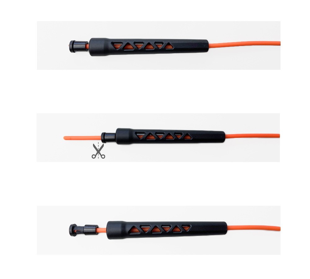 Black-handled orange rope The length of the rope between the handles is 28 meters. The length of the rope between the handles is 2.8 meters. The length of the rope between the handles is 2.8 meters. The length of the rope between the handles is 3.35 meters
