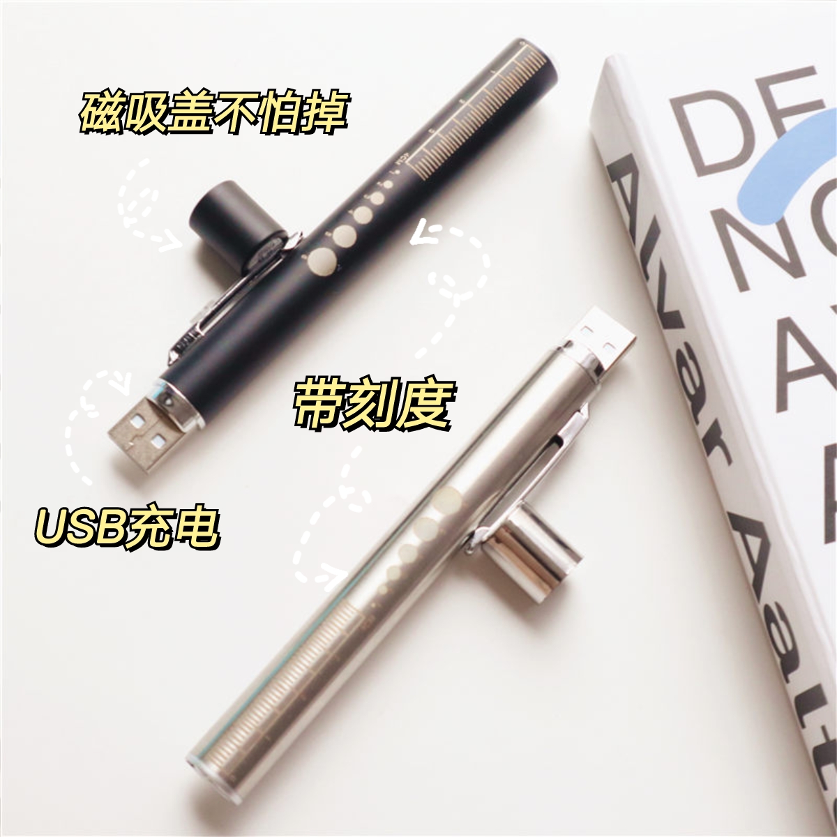 Small portable home mini flashlight Doctor nurse pupil pen light White and yellow dual light source rechargeable oral light