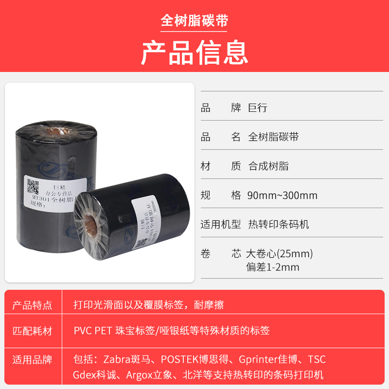 Giant row MT303 large core full resin base ribbon 90mm * 300m thermal transfer ribbon jewelry label Light Film ribbon tsc Jiabo printer ribbon