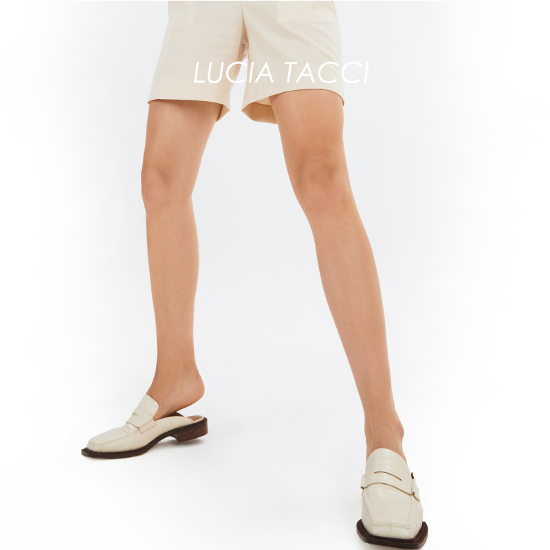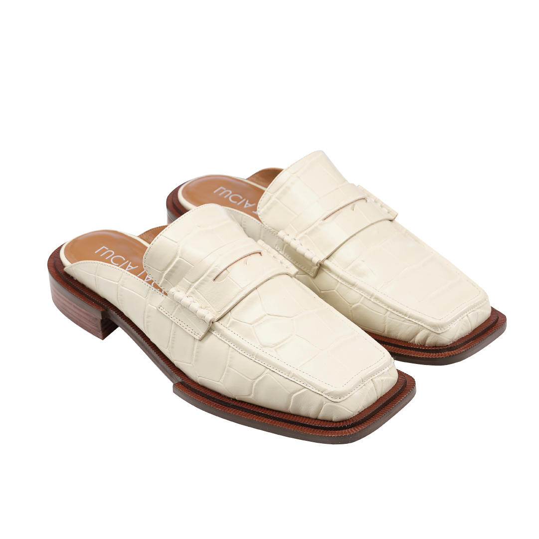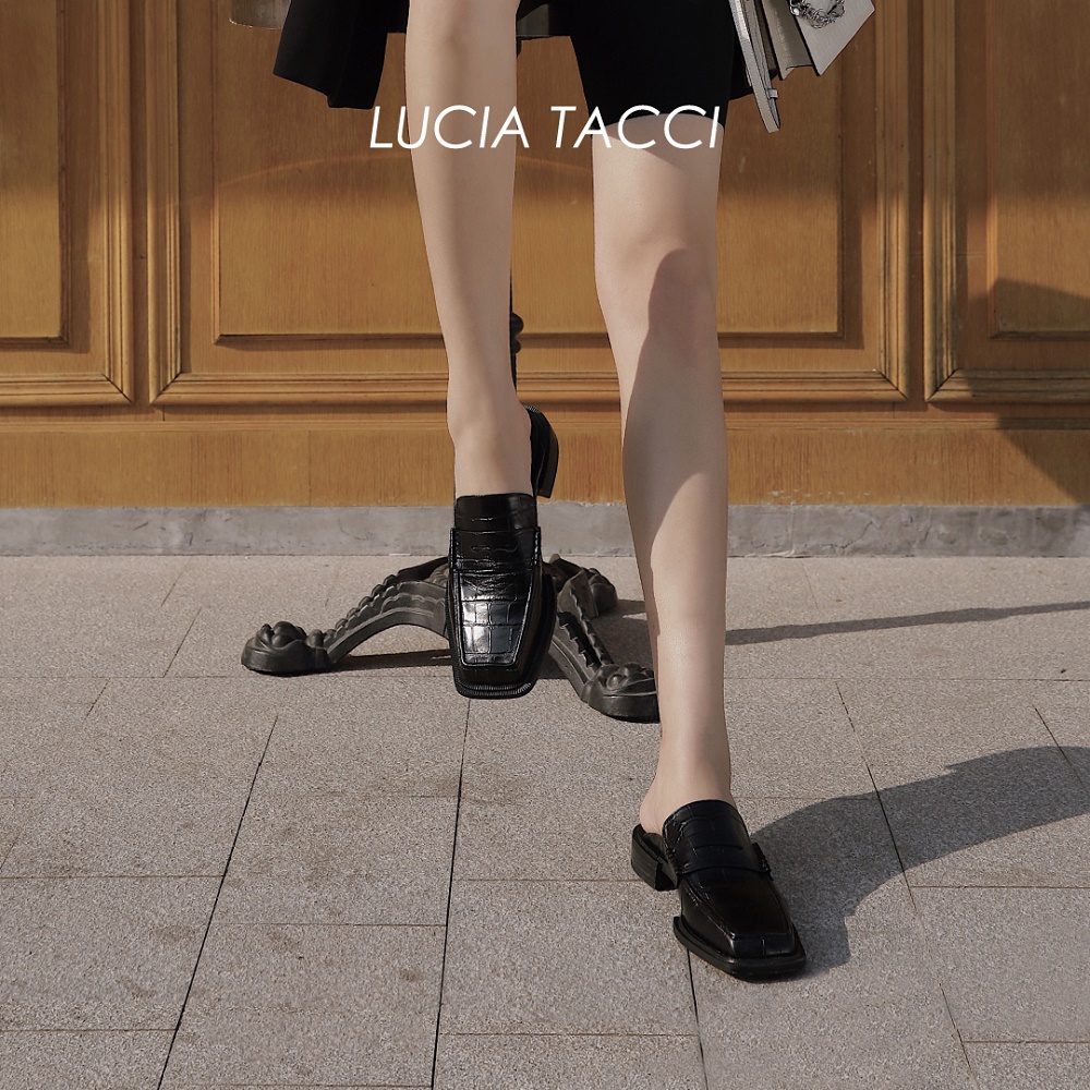 LUCIA TACI Original design Crocodile embossing cow leather metal decorative square head sloth Mueller cool Drag